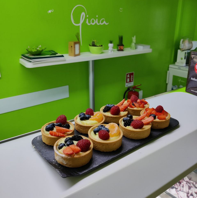 Vassoio da 15 pasticcini assortiti (circa 500 g), con una selezione di bignè, frolle e cannoncini farciti con crema pasticcera, cioccolato, crema al pistacchio e frutta fresca.